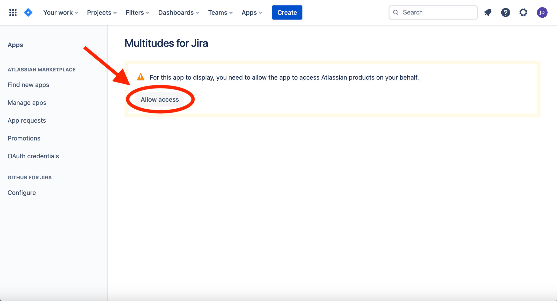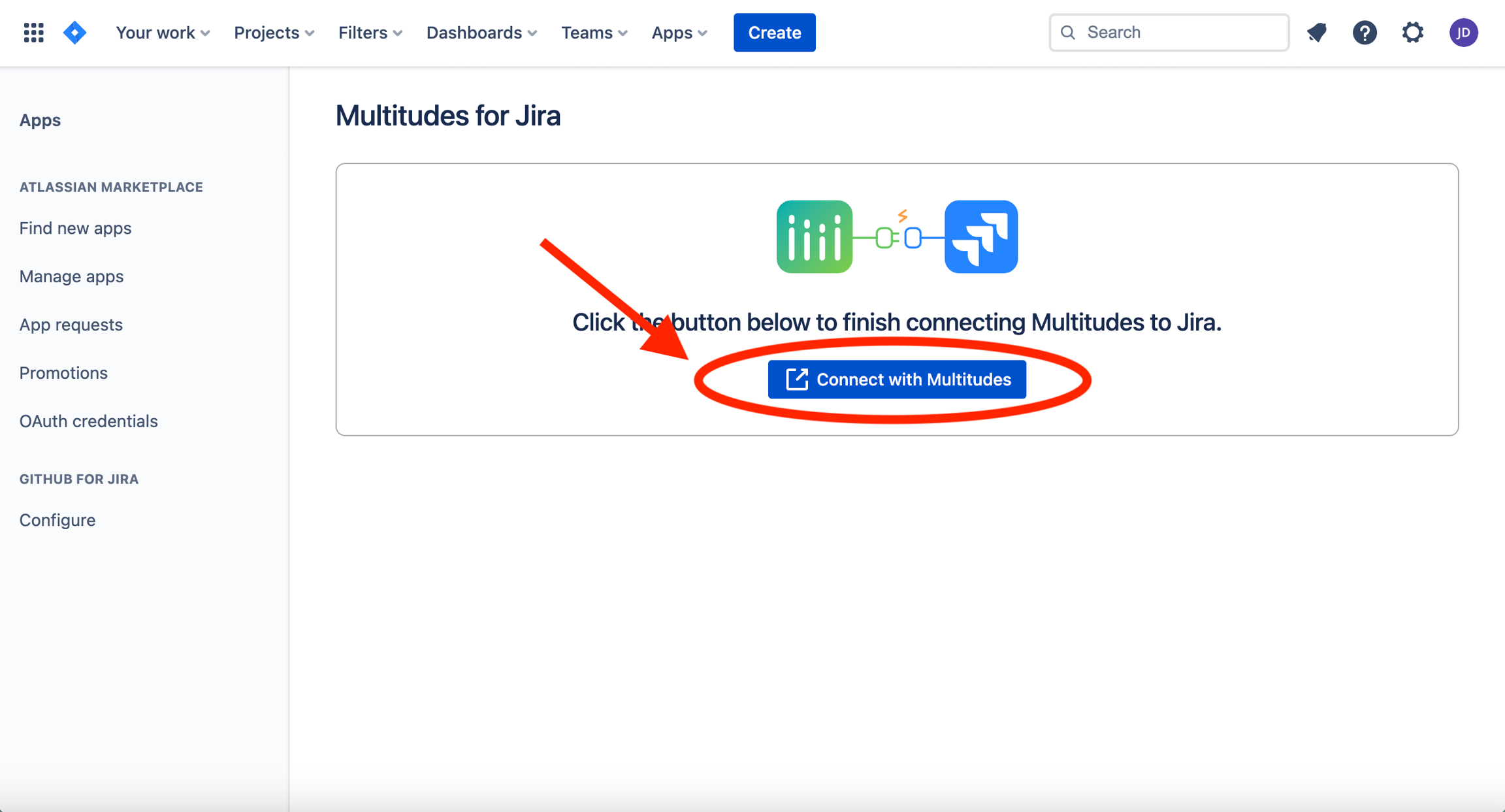 Then find the listing for Multitudes for Jira and click “uninstall”.