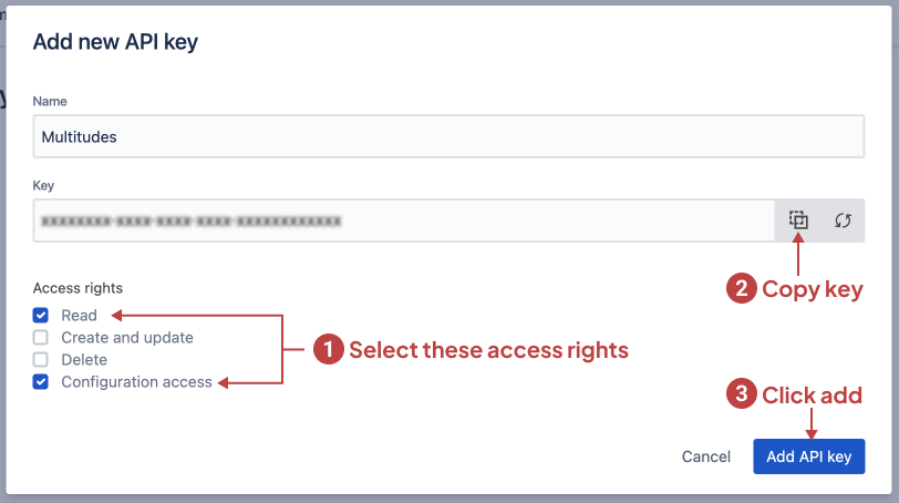 Once you click add a new API key, you should get a pop-up. Proceed to do 3 things in the pop-up